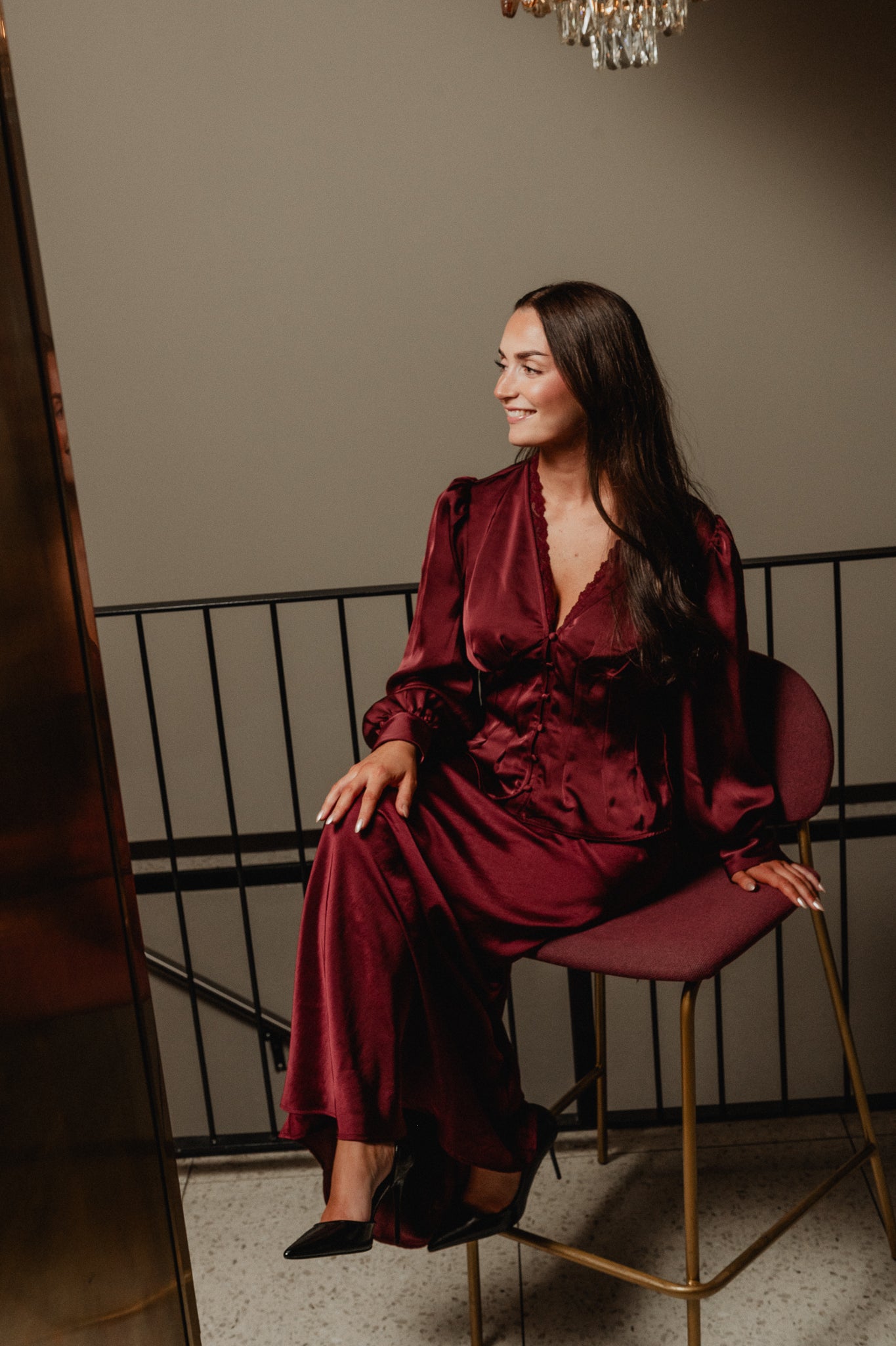 VMSOMMER Skjorte er nå i butikk. Det er en nydelig satengskjorte med v-hals og knappelukking. Skjorten kommer i tre farger, og vi styler den med PCKAM skjørt.